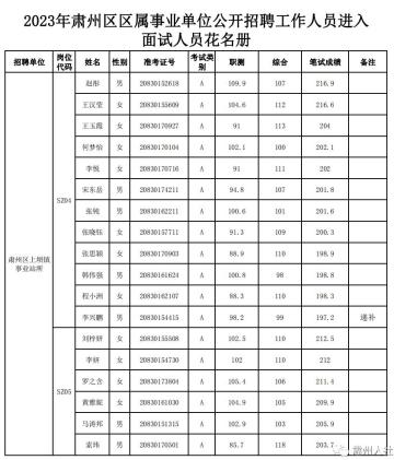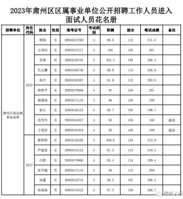 根据《2023年酒泉市县市区事业单位公开招聘工作人员公告(第一批肃州区)》以及资格审核情况,现将面试人员名单予以公布: