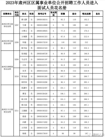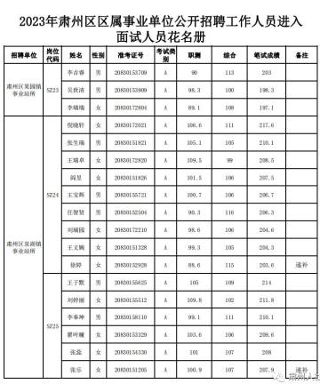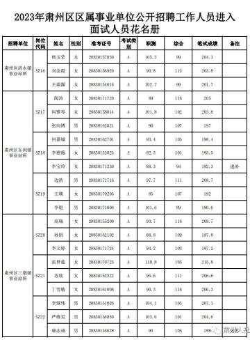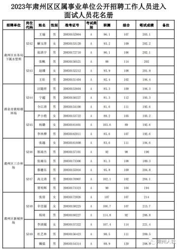 附件:2023年肃州区区属事业单位公开招聘工作人员进入面试人员花名册