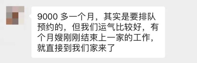 不过即便高薪,寻找一位可靠的月嫂还是有些可遇不可求。“原以为打几个电话就能轻松敲定,没想到这么难。”去年,距离预产期还有5个月,高丽便将找月嫂一事提上日程。不曾想询问了十几位亲友,他们推荐的月嫂档期早就满了。无奈之下高丽将目光投向家政服务公司,但其推荐的月嫂要么价格过高,要么没有眼缘。“好在生产期间我在医院遇到了一位90年的小护工,别看年纪不大,育儿经验倒挺丰富,性格也不错,后来出院就把她直接带回了家。”高丽说。