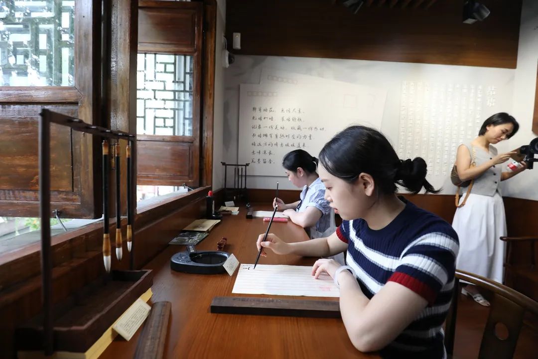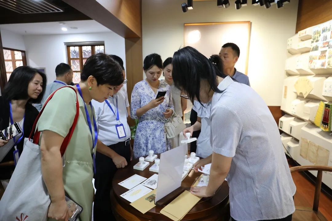 千年古镇意蕴悠长,百年玉兰四季留芳……嘉宾们徜徉于展馆内“序厅、聆听·家书、透过·家书、家书寻秘坊、家书·文化”五个部分,通过听讲解、读信札、看视频、观实景短剧、做套印、致信未来、邮筒寄信、互动答题等体验方式,深切感受家书的文化底蕴和时代传承。