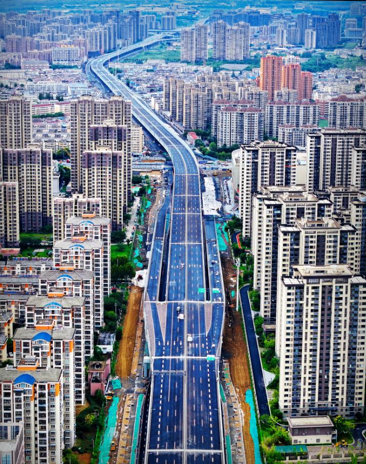 新合肥西站配套市政道路项目一标段清溪路(西二环-十里店路)工程是老路升级工程,作为城市主干路,清溪路是连接西二环、潜山路、疏解新西站到发交通的快速交通走廊。工程从西二环东至十里店,地面道路长1.587公里,高架桥长1.1公里,红线宽45米,高架桥双向6车道。