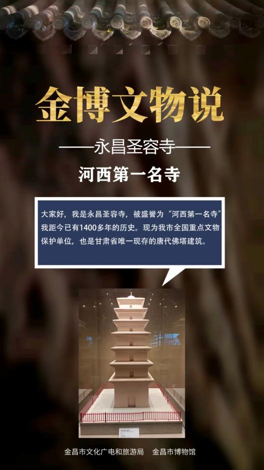 金昌地处丝绸之路黄金地带,是佛教东传的必经之路。境内佛教文化遗存丰富。圣容寺被盛誉为“河西第一名寺”,番禾瑞像就供奉在这里。现为我市全国重点文物保护单位,也是甘肃省唯一现存的唐代佛塔建筑。