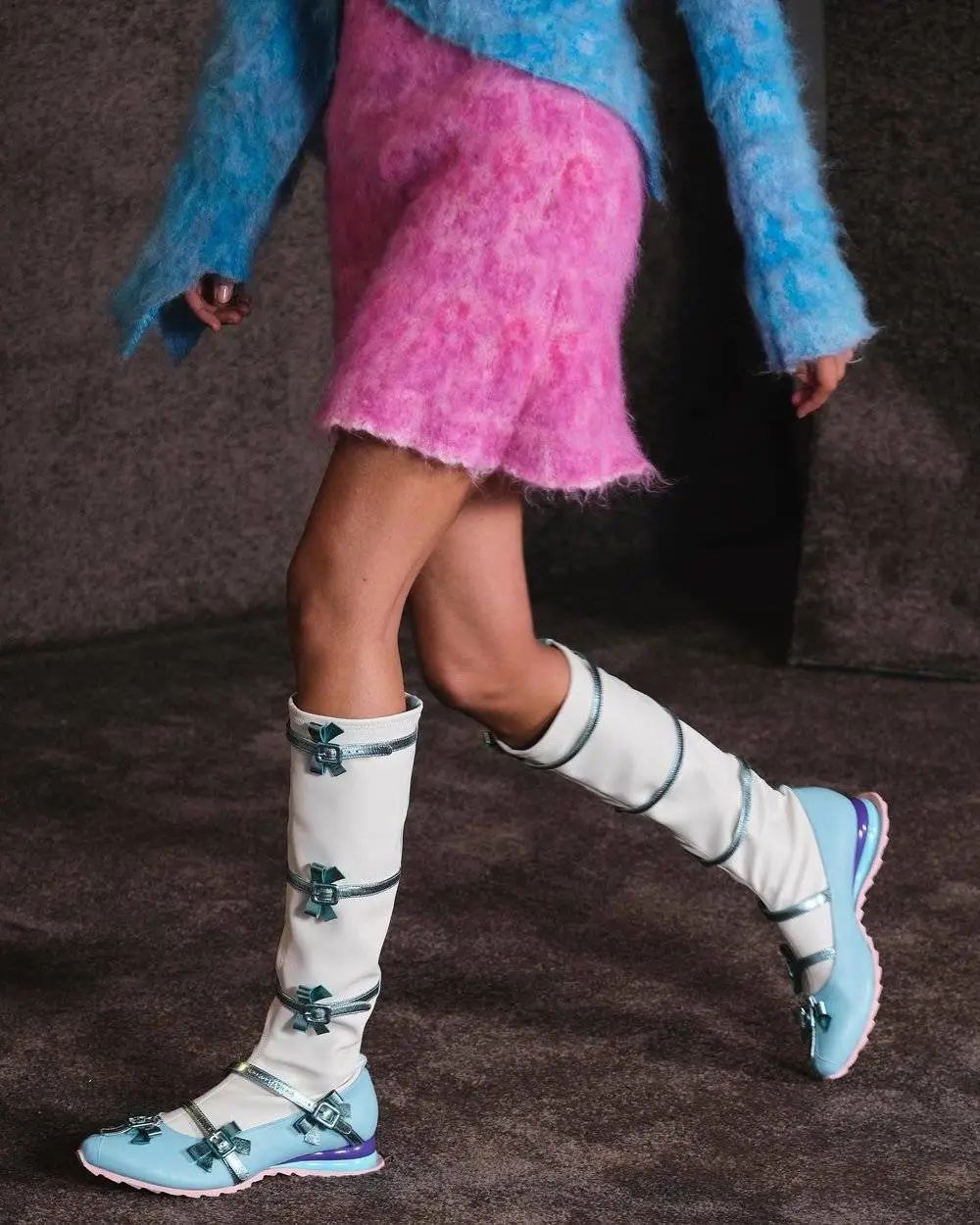 当下丑鞋大卖的例子除了前面提到的 Crocs、 勃肯鞋、动漫感高筒靴,还有像 Kiko Kostadinov 之流将各式艳丽色彩堆叠打造的丑鞋系列,不仅一鞋难求,二级市场上更是转手就能血赚的程度。