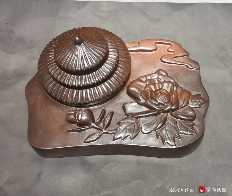 “函关窑五大系列产品是函关窑匠人研发烧制的富含洛阳及新安地域特色的文创产品,分为黑釉瓷茶器系列、黑釉瓷餐具系列、紫砂茶具系列、文房雅玩系列和陶器系列。黑釉瓷茶具函关盏,再现宋朝茶盏古韵,品茗观赏两相宜。”中国工艺美术品设计师、河南省工艺美术大师崔红涛带领团队研发了多种产品,兼具艺术性与市场性,这次参展的函关盏采用新安当地的原矿原釉,遵循古法烧制,兼具时代特色,在1300多摄氏度高温下自然窑变产生华丽釉色。