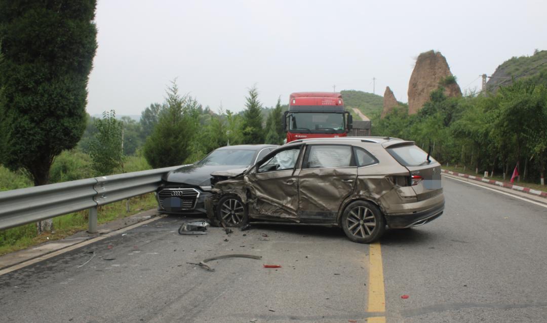 近日,郭某驾驶车牌号为晋KU**79小型汽车,在山西省晋中市寿阳县G339(滨榆线)西洛村路段超车时与对面周某某驾驶车牌号为晋K1**46大型汽车,李某某驾驶车牌号为晋MB**3B小型汽车相撞,造成三方车辆损坏,晋 KU**79驾驶人郭某、乘车人李某某和晋MB**3B驾驶人李某某受伤的交通事故。
