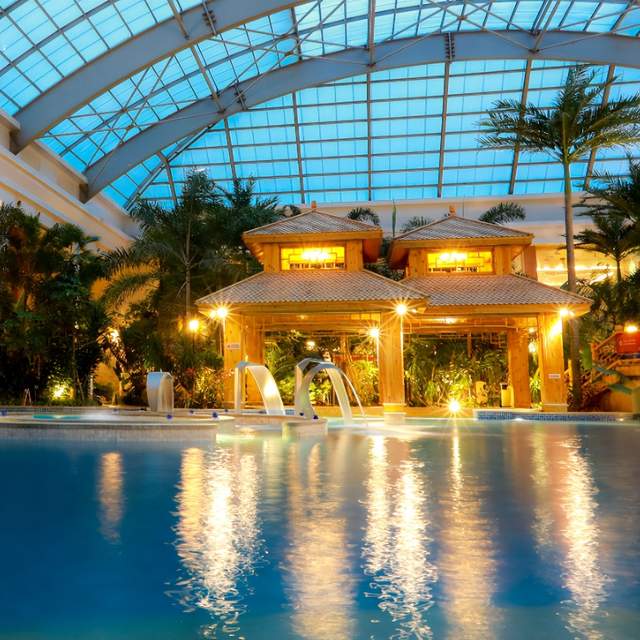 御龙温泉度假村拥有38个特色养生温泉泡池,更设有成人水寨、儿童水寨、彩虹滑梯等水上乐园设施,是放松身心、体验畅快的绝佳之选。