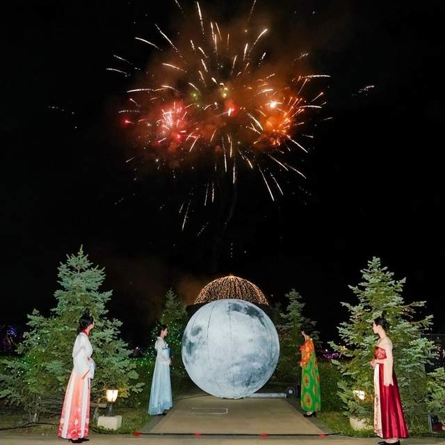 9月29日-10月1日每晚18:30左右,千人广场将开启烟花盛典;9月29日-10月6日,各类表演演艺热闹登场,夜幕降临后,梦幻城堡前还将亮起一轮巨大明月,送给你极致浪漫!