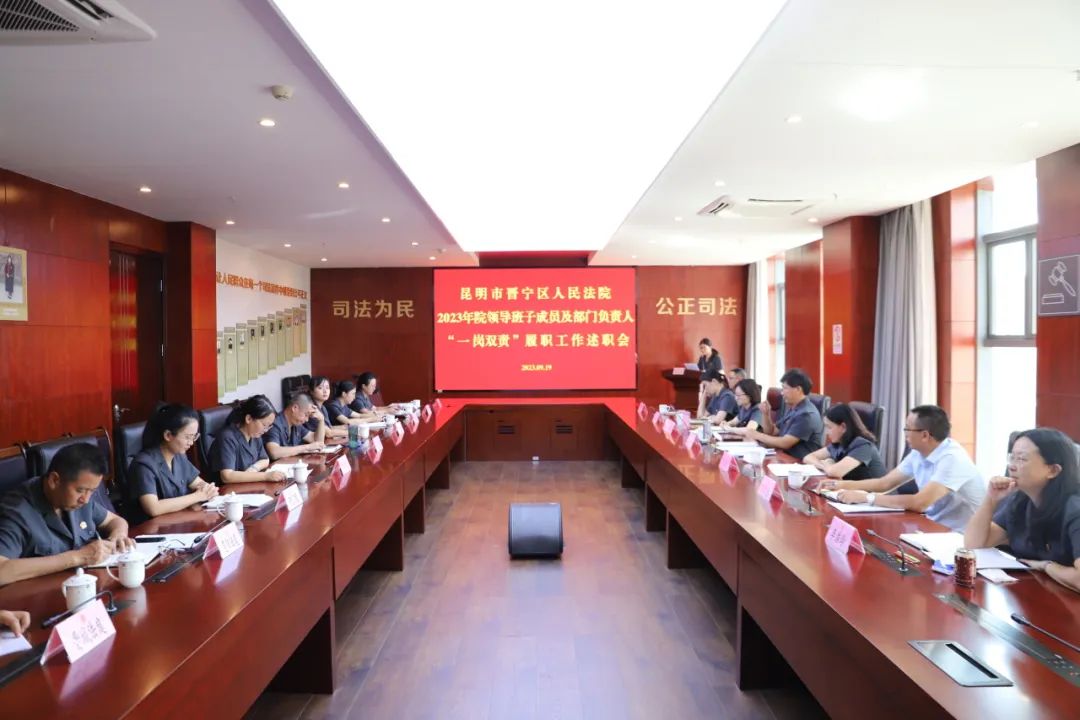 为进一步强化党风廉政建设和反腐败工作,压实压紧“关键少数”主体责任, 9月19日下午,昆明市晋宁区人民法院召开2023年度领导班子及部门负责人“一岗双责”履职工作述职会议。院领导班子成员、审判委员会专职委员、各部门负责人及中层以上领导干部参加。