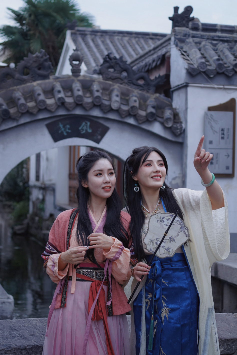 虽已是金秋时节,但是曲水河岸依旧葱茏,花草藤蔓将岸边古风建筑掩得若隐若现。不在江南,胜似江南。