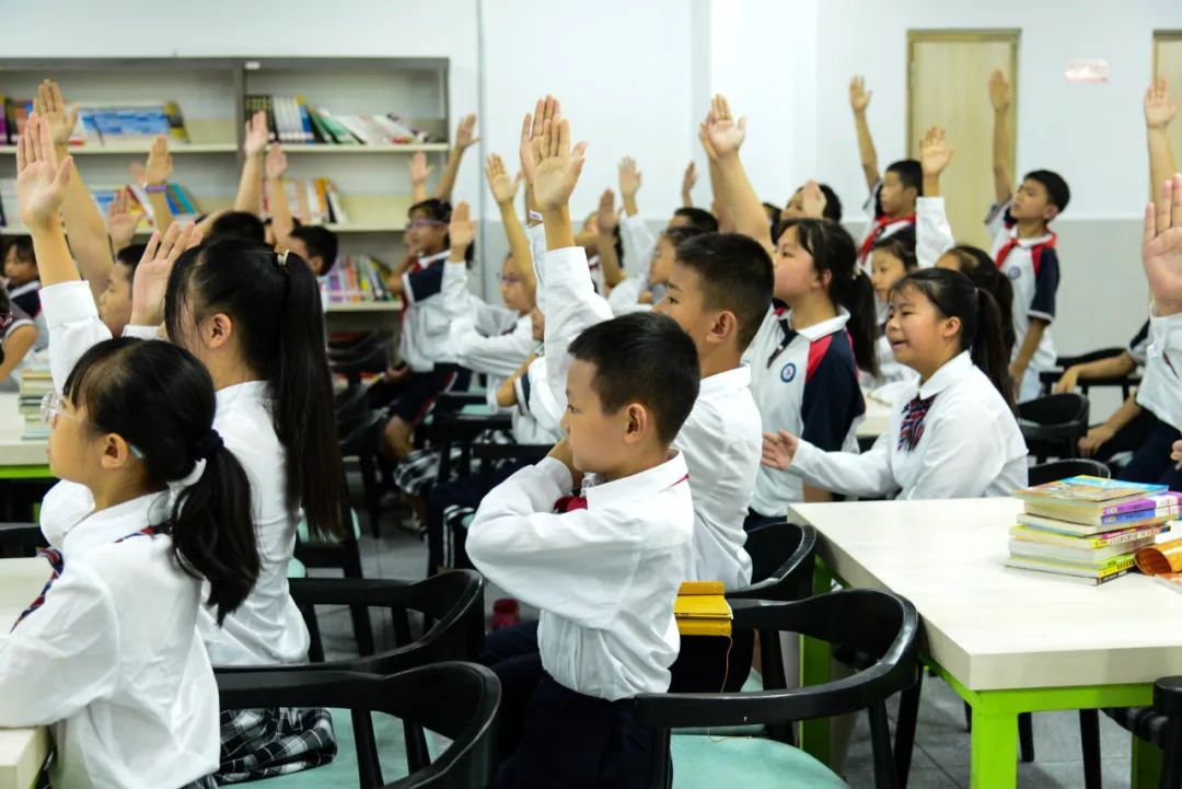 孩子们一个个小手举得老高,争相抢答问题。