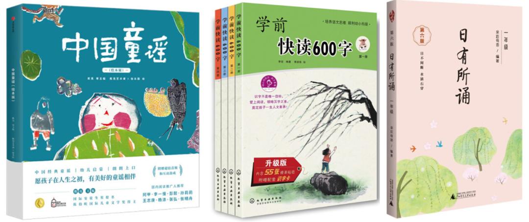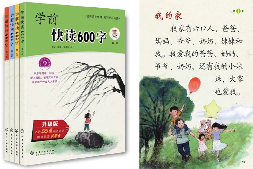 用童谣开始,朗朗上口,既满足了声韵启蒙的需要,孩子读起来也觉得有趣,不会排斥。一首童谣读3遍,五分钟绰绰有余,再重复个三四天,读熟练为止。第二阶段:选择的是《学前快读600字》。