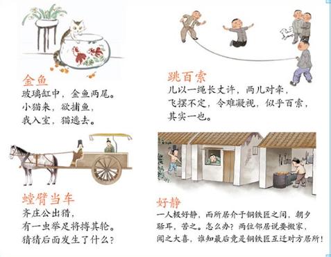 《文言日诵》故事篇,很生动有趣之前尝试过把英语的指读也加进去,但是时间太长,早晨来不及,所以还是另外安排了时间。这个时间段就专门安排语文的诵读,5分钟左右,娃不排斥,时间也来得及,正好用了上学前的碎片时间。