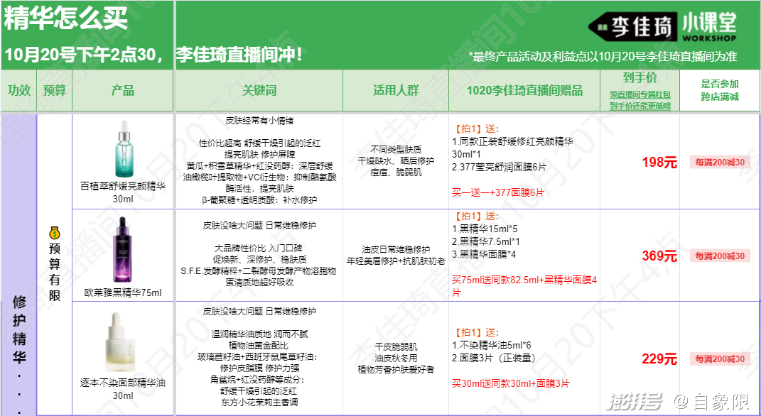 巅峰时候,消费者会在双十一为李佳琦直播间单独出一份攻略,他也曾将自己直播间的各种优惠做成一张几十页的Excel表,明明白白告知粉丝何时蹲点、如何下单、如何凑满减....