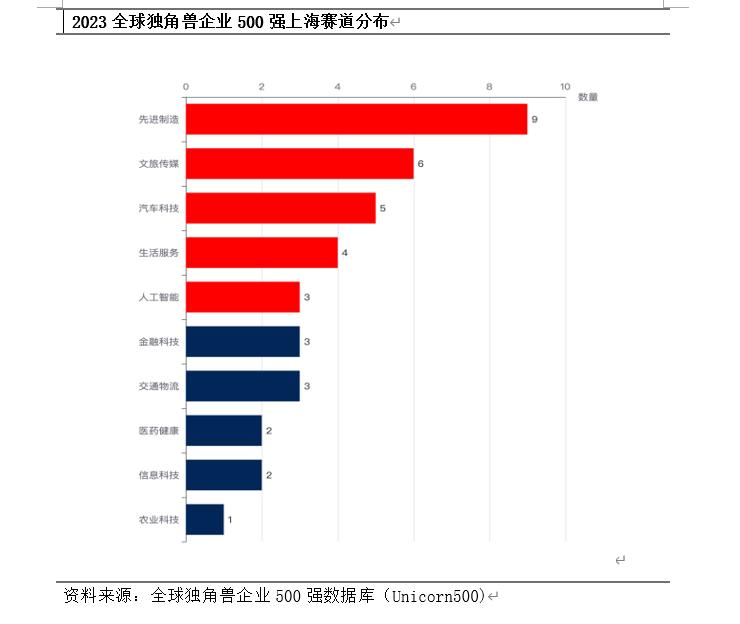 (4)上海先进制造位居赛道之首。上海独角兽企业500强数量之所以超越北京,得益于其先进制造赛道的优势。上海独角兽企业500强中,位居赛道首位的是先进制造赛道,共有9家独角兽,同比增加2家。上海在先进制造行业占据较大的优势。