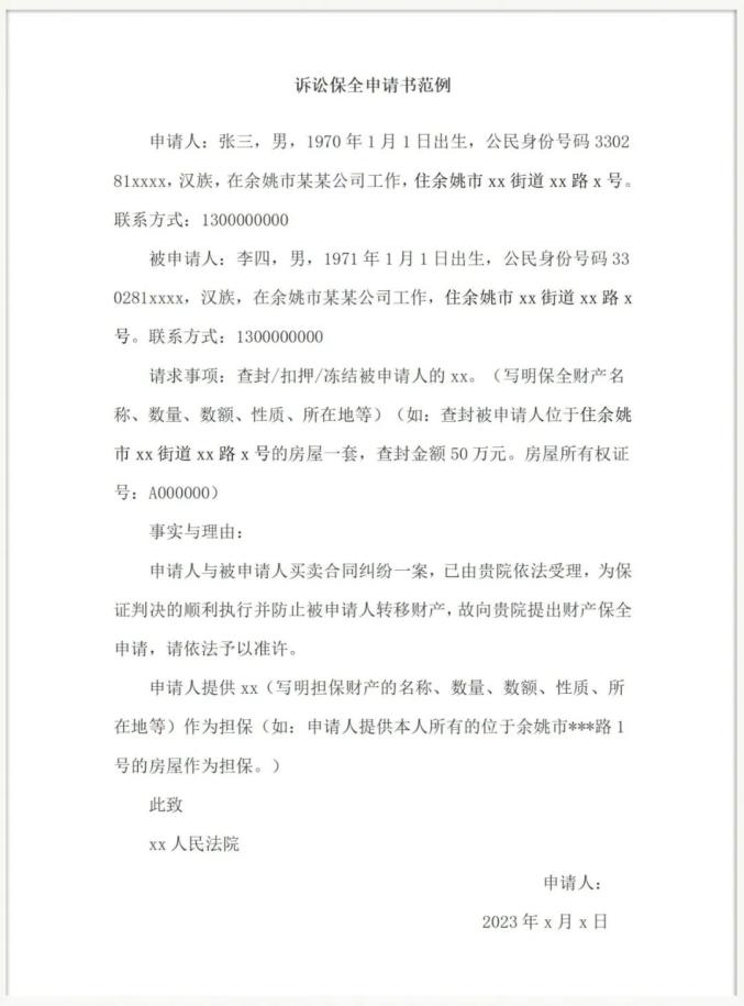 财产保全申请书模板