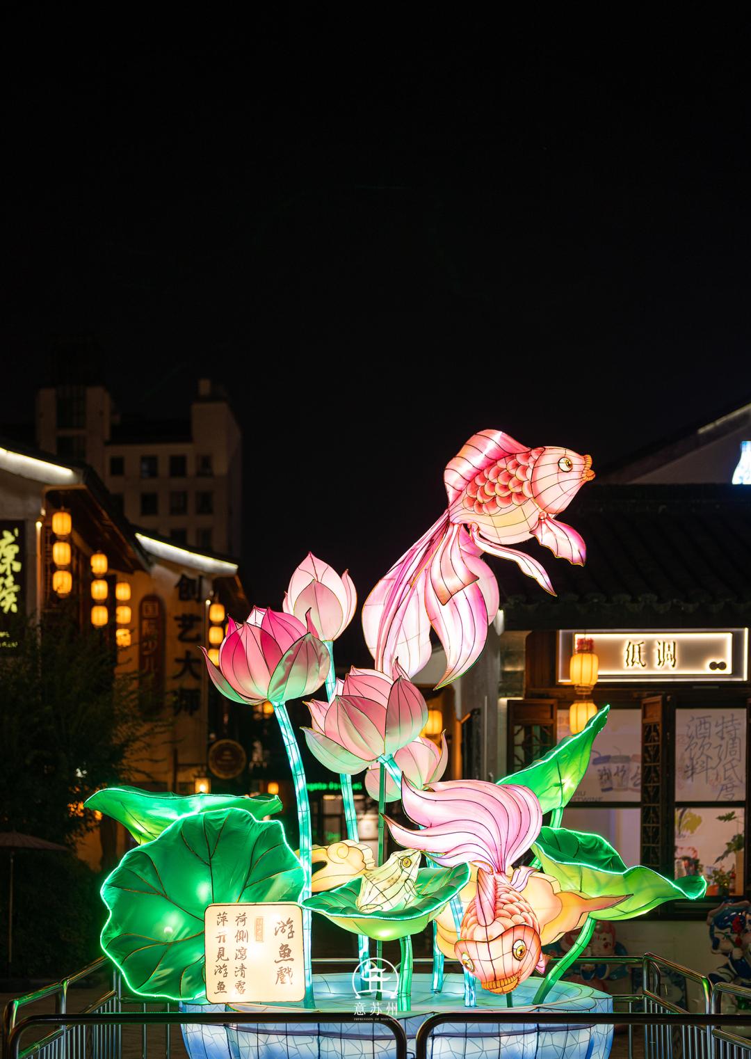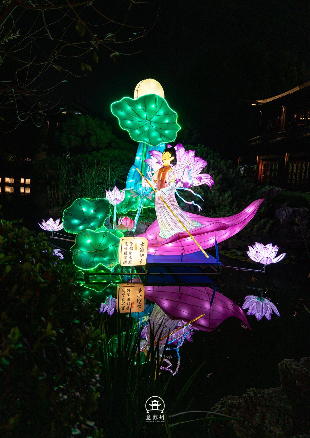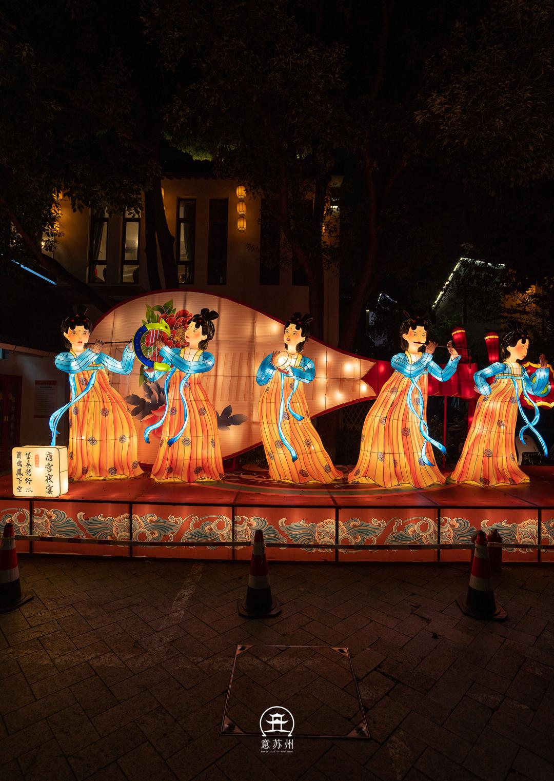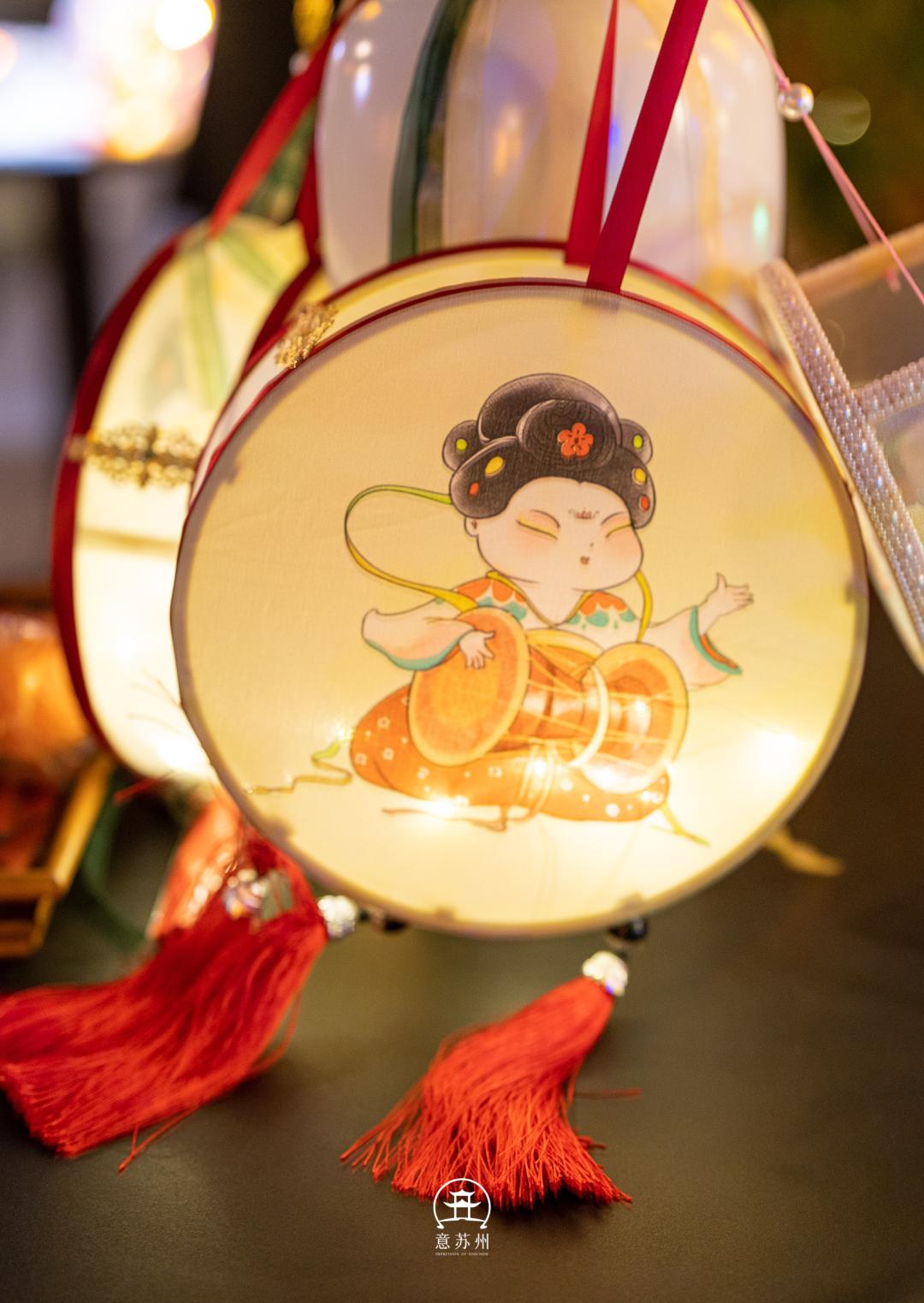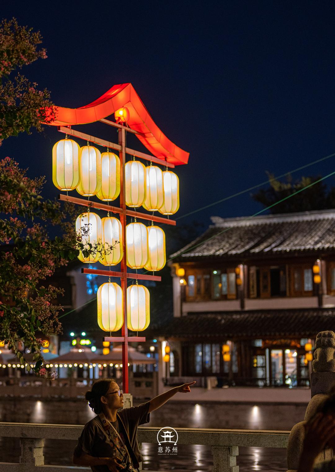 斜塘老街结合国家级非物质文化遗产苏州灯彩及园林式街区建筑特色,与汪筱文老师团队合作,从诗歌、书画、乐舞等方面,深入挖掘传统审美精神、审美趣味和审美风尚元素,通过灯彩组景的形式呈现。
