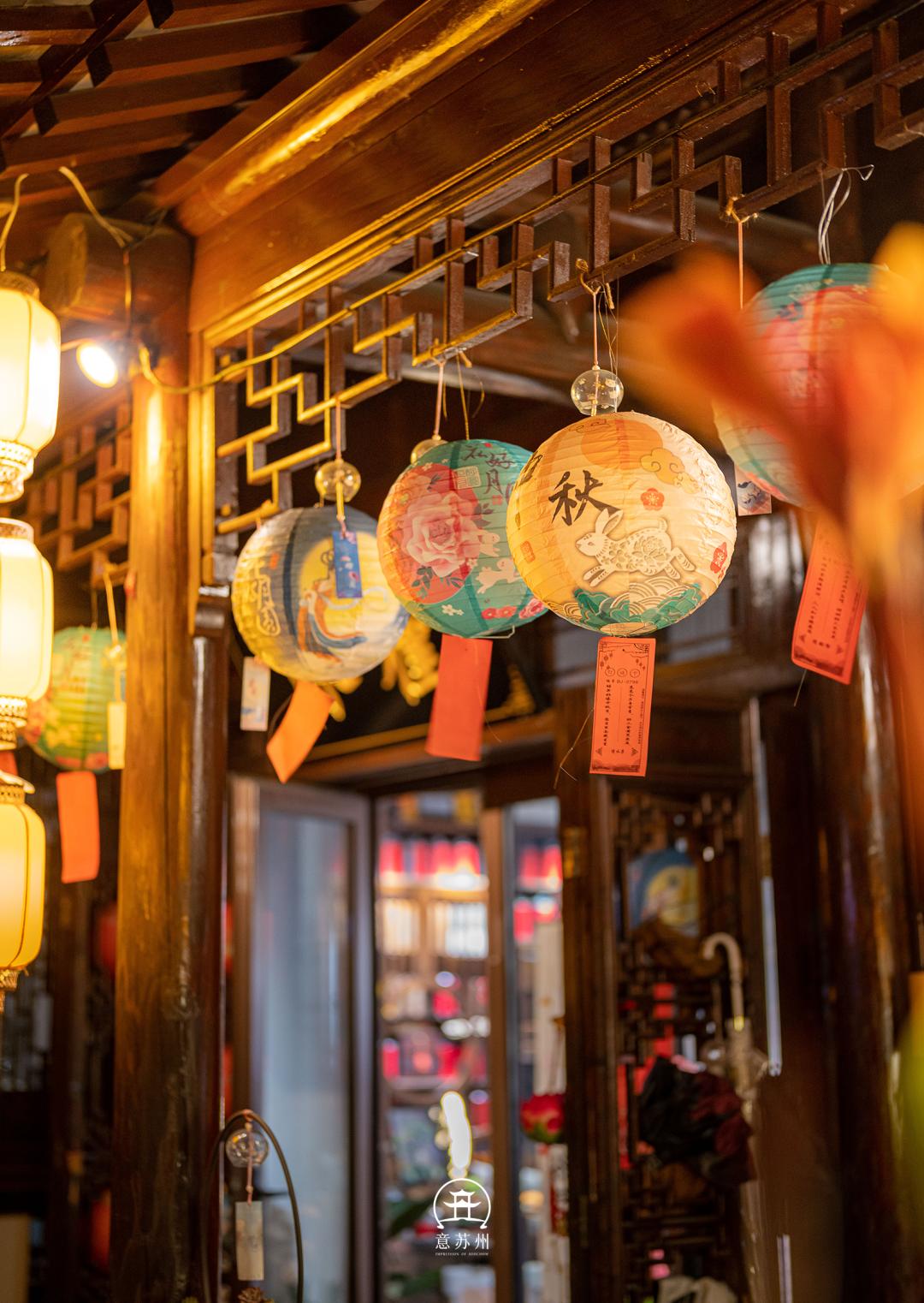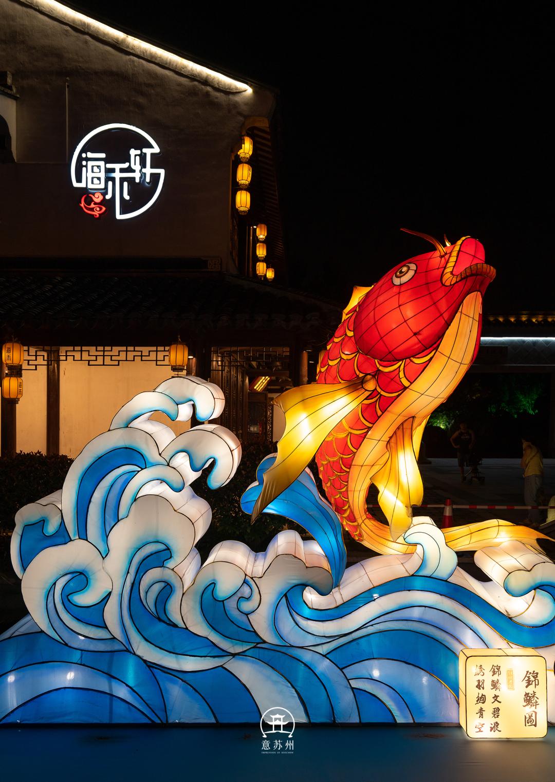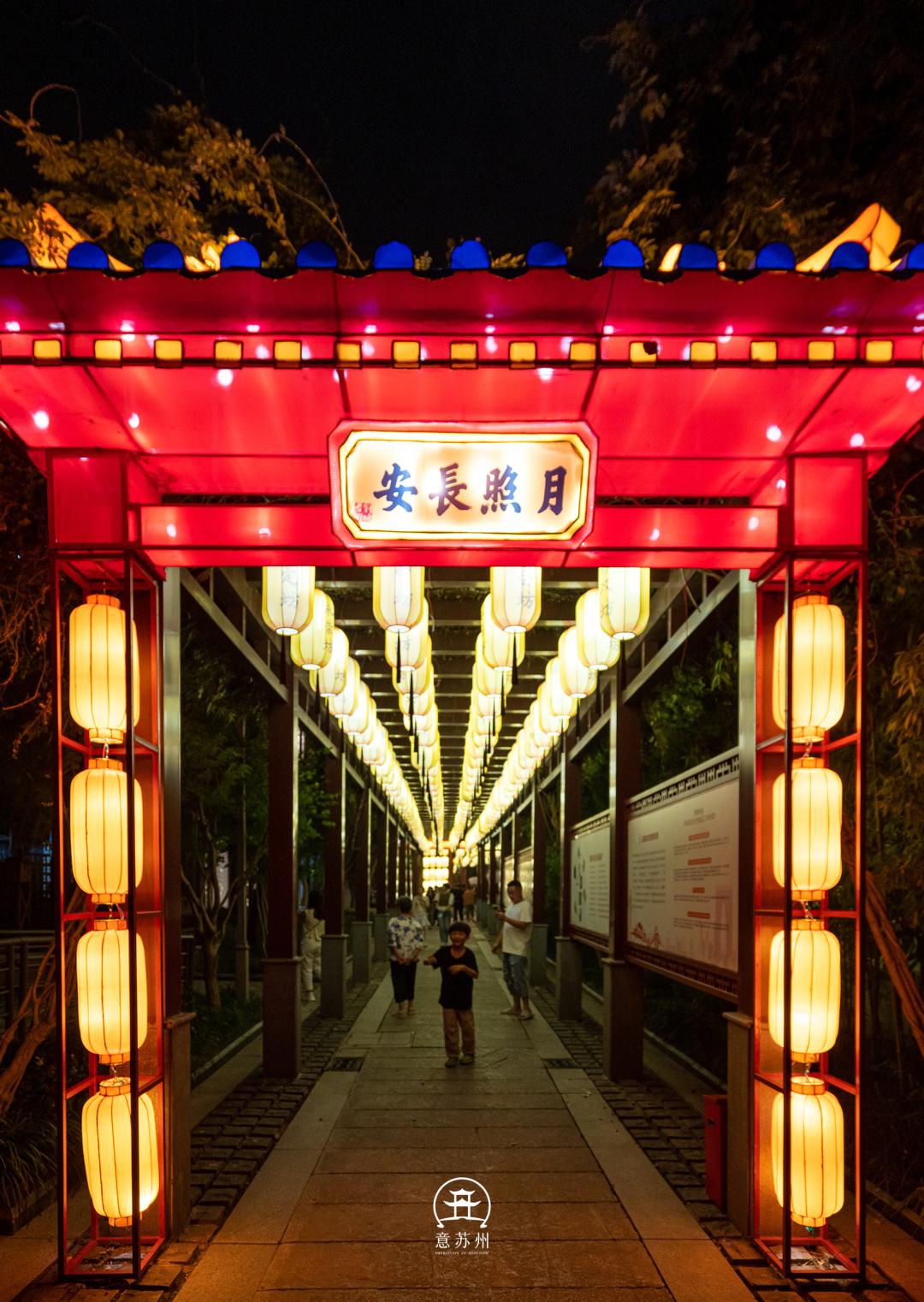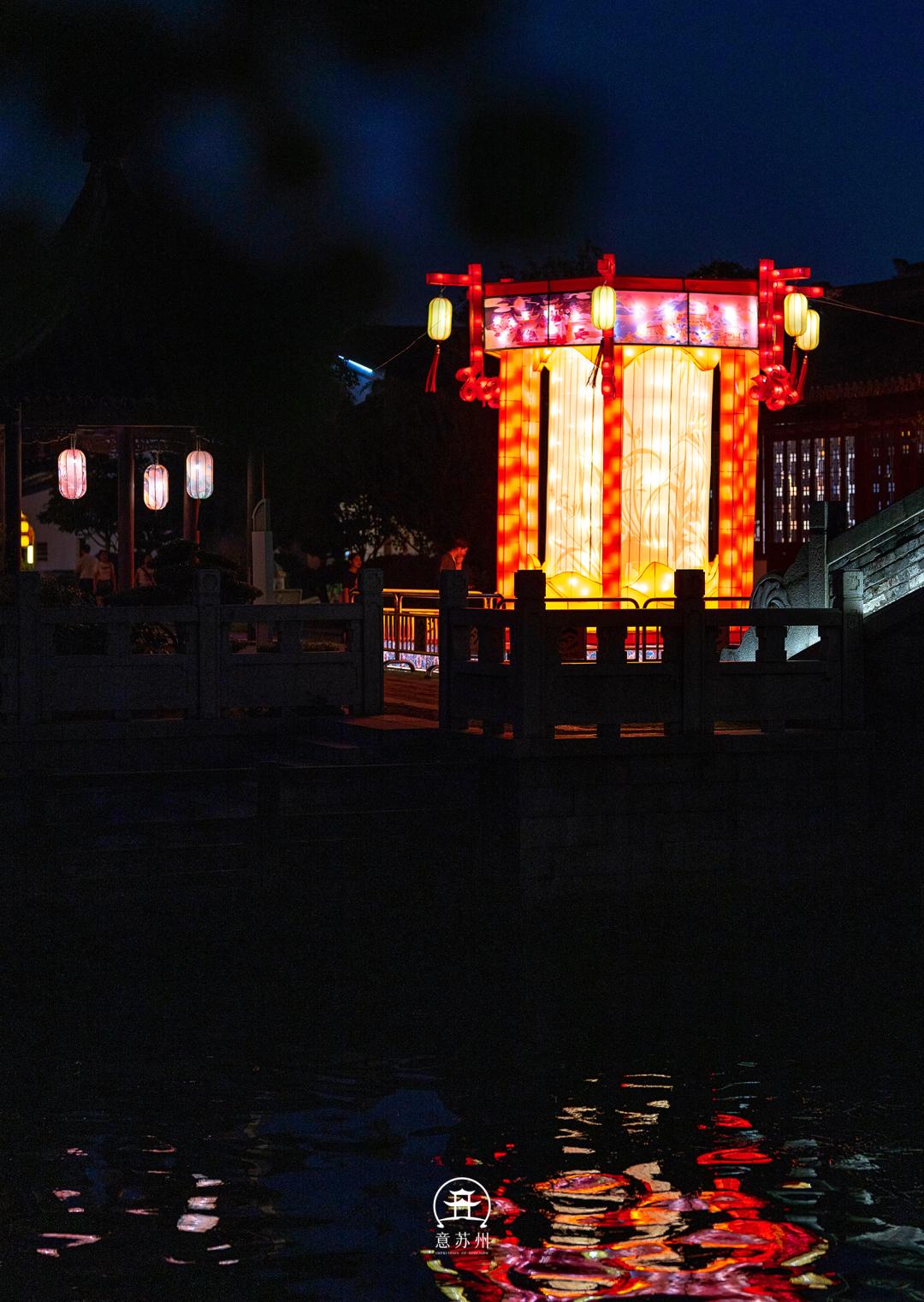 斜塘老街结合国家级非物质文化遗产苏州灯彩及园林式街区建筑特色,与汪筱文老师团队合作,从诗歌、书画、乐舞等方面,深入挖掘传统审美精神、审美趣味和审美风尚元素,通过灯彩组景的形式呈现。