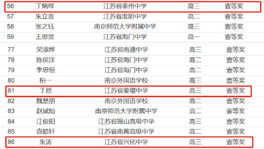近日,江苏省物理学会公布第40届全国中学生物理竞赛(江苏赛区)复赛赛区一等奖名单和入围省队名单。泰州3位同学获得赛区一等奖 。