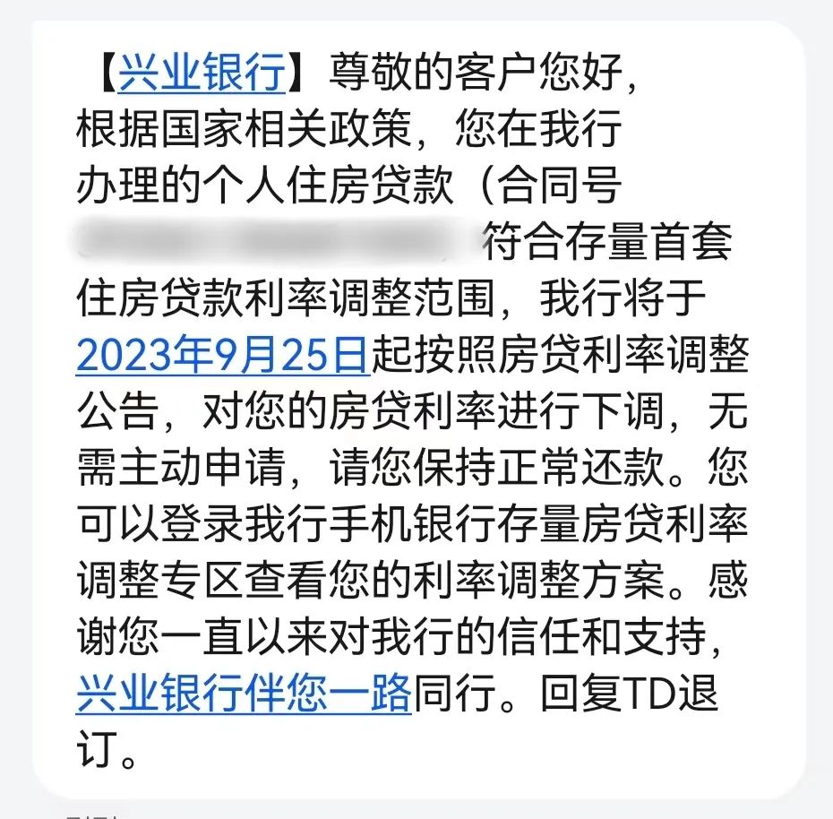 如果是符合条件的首套贷款,也不需要个人去向银行申请下调利率,银行会在9月25日主动批量调整,并把结果通过短信方式通知本人,新的利率水平在当天就会生效。