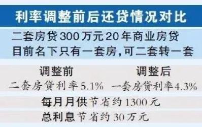 如此一来,房贷利率下调幅度达到80BP,从5.1%降至4.3%,按等额本息还款,调降后陈先生可节省月供约1300元,总利息节省约30万元。