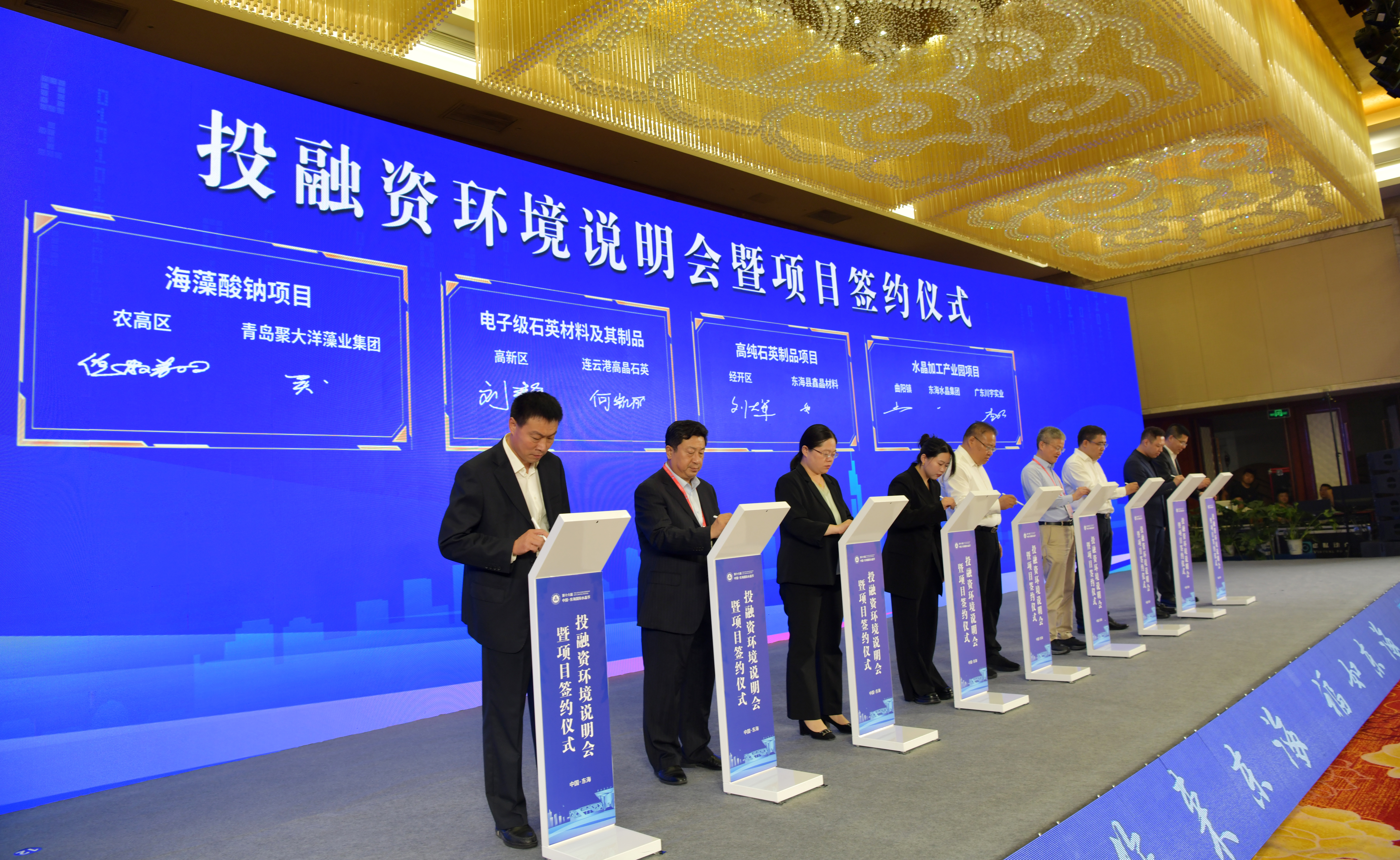 当天,东海县还举行了投融资环境说明会暨项目签约仪式,集中签约了水晶加工产业园、海藻酸钠、高纯石英制品等38个项目,总投资额217.4亿元。