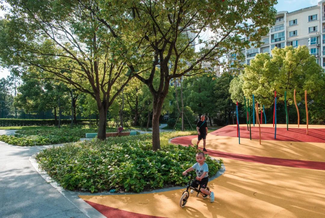 此外,为满足周边社区全年龄段人群的活动需求,春申塘绿道的公共绿地内不仅新建了多处休憩长廊、游乐设施和儿童乐园,绿道沿线还贴心地设置了休憩长椅、小型亲水平台、公共厕所等多种便民服务设施,将“家门口”的空间有效地利用起来。
