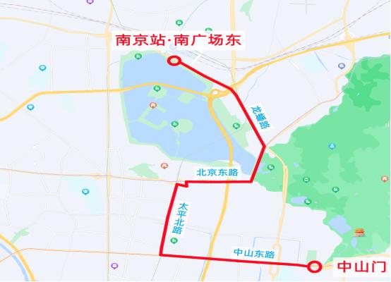 南京站·南广场东9:30-18:00、中山门10:10-18:40。线路自“南京站·南广场东”站起,沿龙蟠路、北京东路、太平北路、长江路、长白街、中山东路至“中山门”站往返行驶,沿途经过以下站点:南京站·南广场东、新庄广场南、锁金村、龙蟠路·岗子村、太平门、北京东路·九华山、太平北路·鸡鸣寺、四牌楼、总统府、中山东路·逸仙桥、明故宫东、中山门。