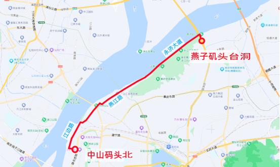 燕子矶头台洞9:30-19:30、中山码头北10:00-20:00。线路自“燕子矶头台洞”站起,沿永济大道、燕江路、宝塔桥西街、江边路至“中山码头”站往返行驶,沿途经过以下站点:燕子矶头台洞、燕子矶二台洞、燕子矶三台洞、五马渡、上元门、南堡公园西、下关火车主题公园(临时新设)、中山码头北。