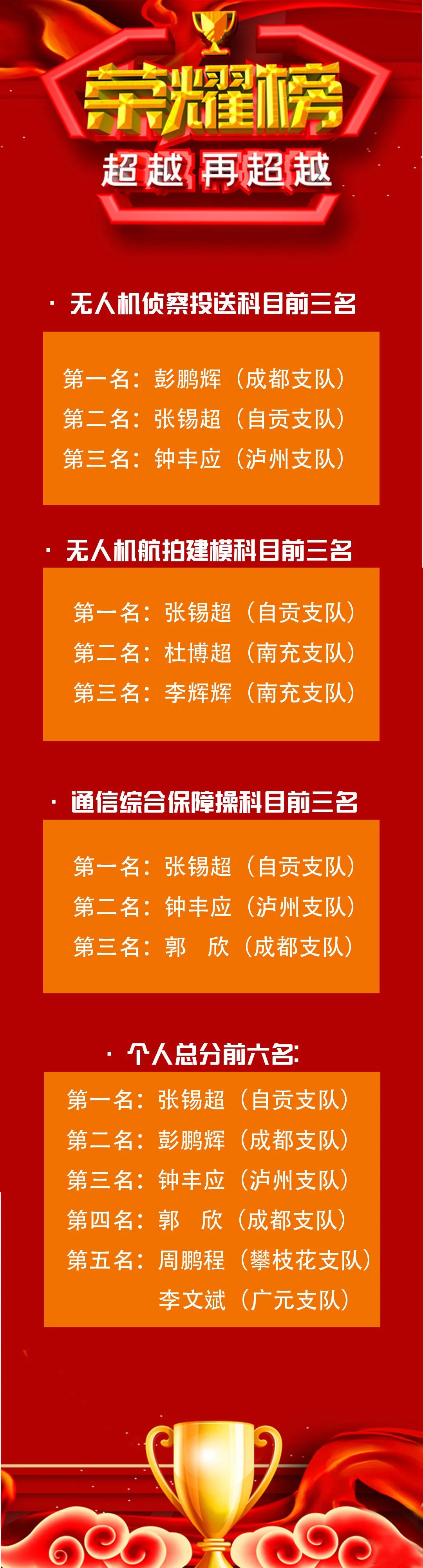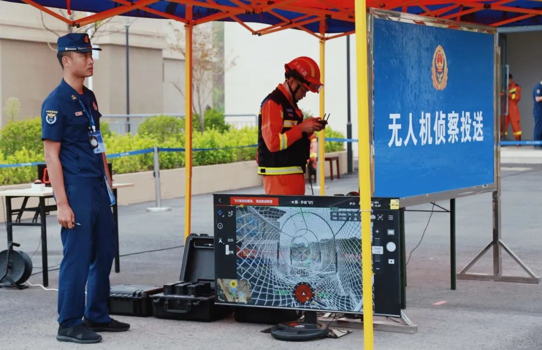 无人机穿越模拟灾害现场的复杂通道,穿越后在复杂的侦查区域内进行搜寻危化品标识和热源,搜寻期间,无人机不得高于侦查区,拍摄危化品标识、热源照片后,飞至抛投区搜寻铁筒拍摄照片并精准返航。在无人机侦察结束后,参赛选手还要继续操作无人机超视距飞行将矿泉水瓶准确抛投至铁桶内。