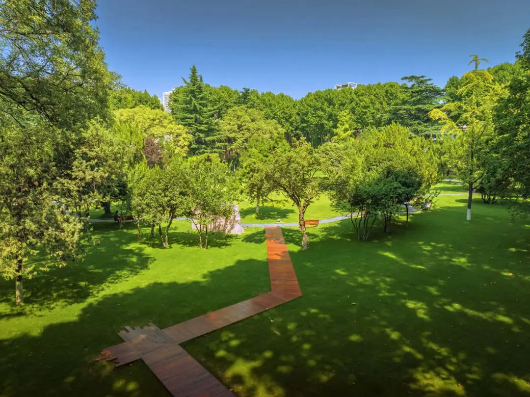 现如今,茵茵绿草上铺设着木制栈道,新添的座椅提供了更为舒适的休闲空间,学习科研之余,漫步其间,在满眼苍翠中找寻灵感,在鸟语花香中畅聊未来。
