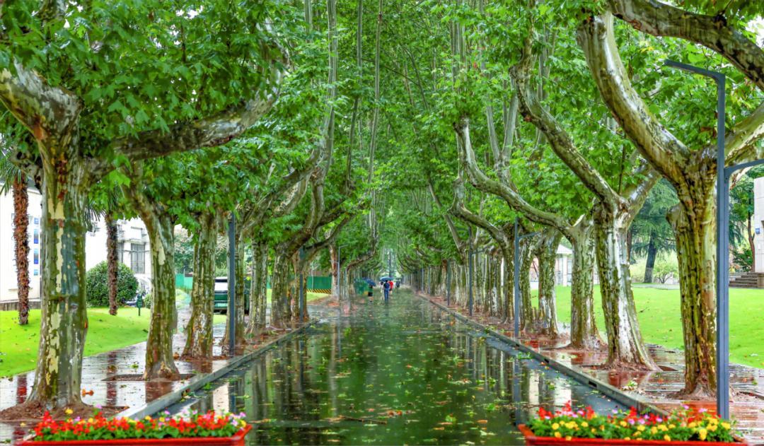梧桐大道两侧还专门规划有非机动车停放处,方便师生的同时,校园也更整洁。