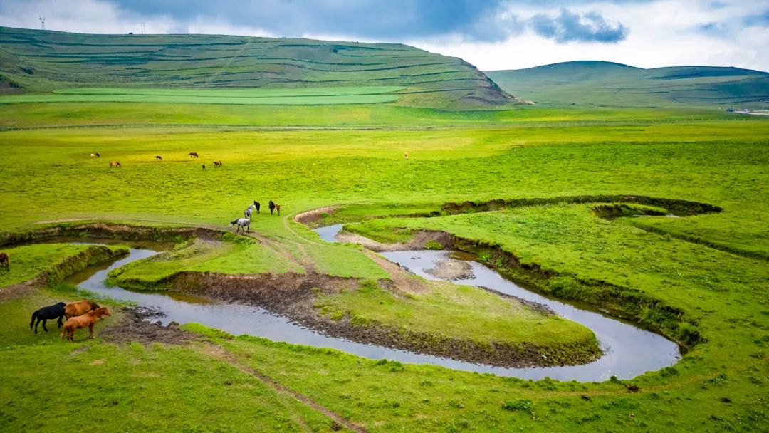 狼渡滩给人既有辽阔雄壮之感,也有细腻温柔之美,沿路前行,恍若渐入画卷。原生态草原地形起伏缓和,四周群山绵延,草滩宽广,水草丰茂,牛羊肥壮,风景优雅。在这里,不仅可以领略草原的辽阔壮美,更能远离城市喧嚣……