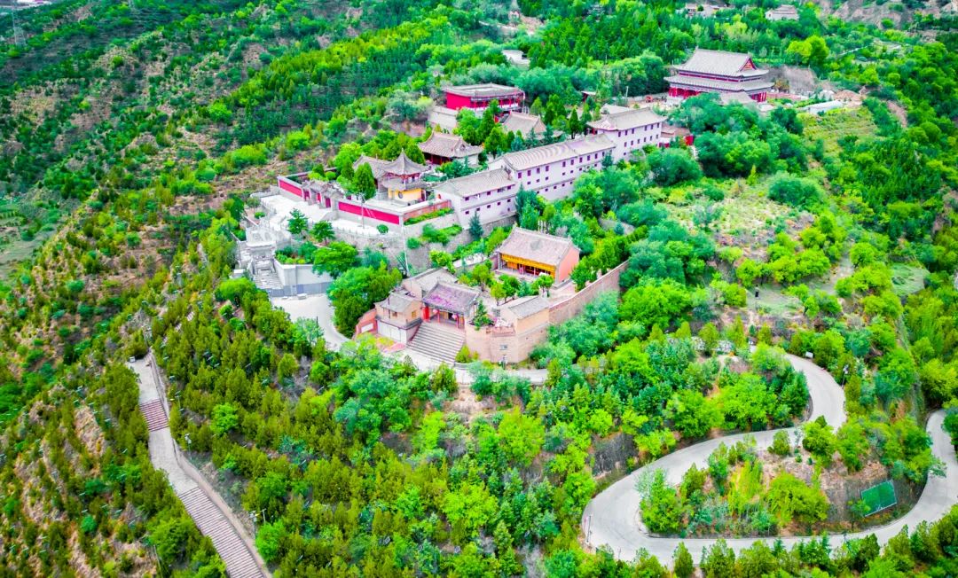 沿盘山公路而上,松柏茂密,翠绿成萌。鲜花盛开,清风送爽。长长吸一口新鲜空气令人心旷神怡。俯视山下,安定城全景映入眼帘,高楼林立,广场宽阔,绿树成荫,路网如织,车流如水,人流如潮,展示旱塬新貌。