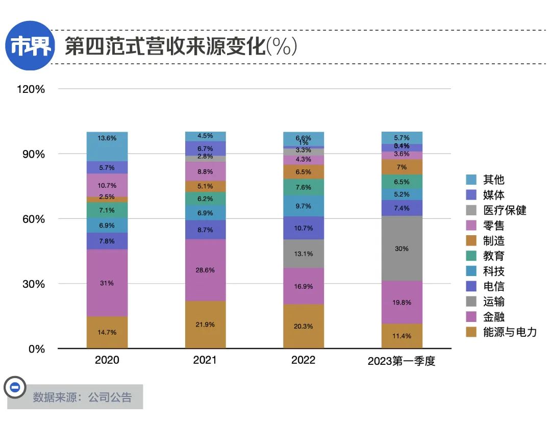 经过一番收购操作,第四范式的营收结构已经呈现出多元化的特点。2022年,能源与电力行业已成为第四范式的第一大营收来源,占比为20.3%,来自金融业的营收占比为16.9%,排名第二。
