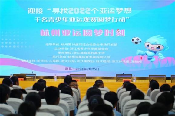 行动至今,共征集到超20万个“亚运梦想”,吸引了7亿人次了解、参与亚运公益,形成亚运梦想“同心圆”。其中,公益圆梦大使陈燮中先生的梦想“圆千名青少年亚运观赛梦”从20万个“亚运梦想”中脱颖而出,正式成为“寻找2022个亚运梦想”中的一个。9月25日,杭州亚运会“寻找2022个亚运梦想”大型公益活动之一“千名青少年亚运观赛圆梦行动”活动走进遂昌县妙高小学,这标志着该校100名学生走进亚运赛场观赛的梦想即将幸福实现。