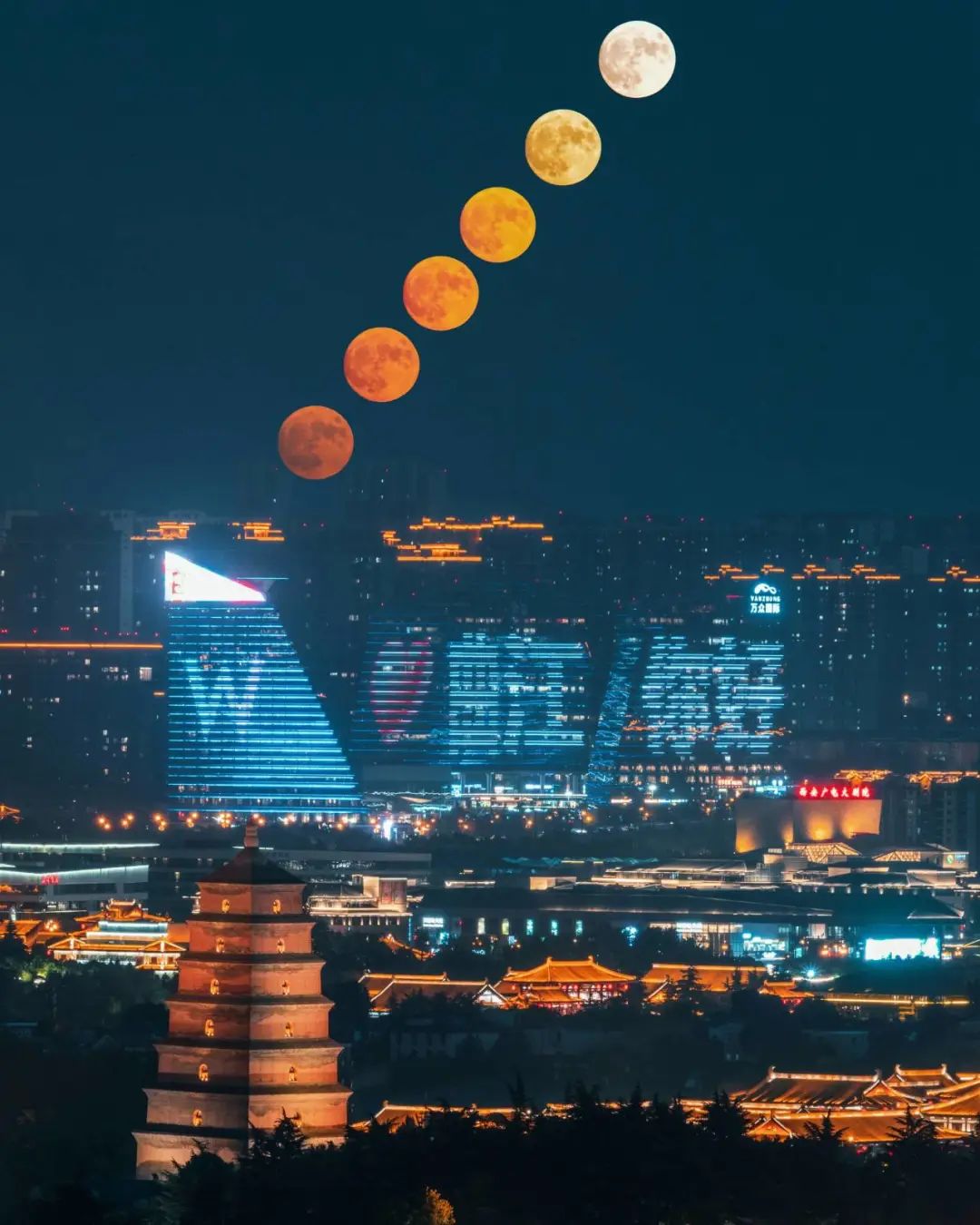大雁塔追月(西安工业集团 张哲培)