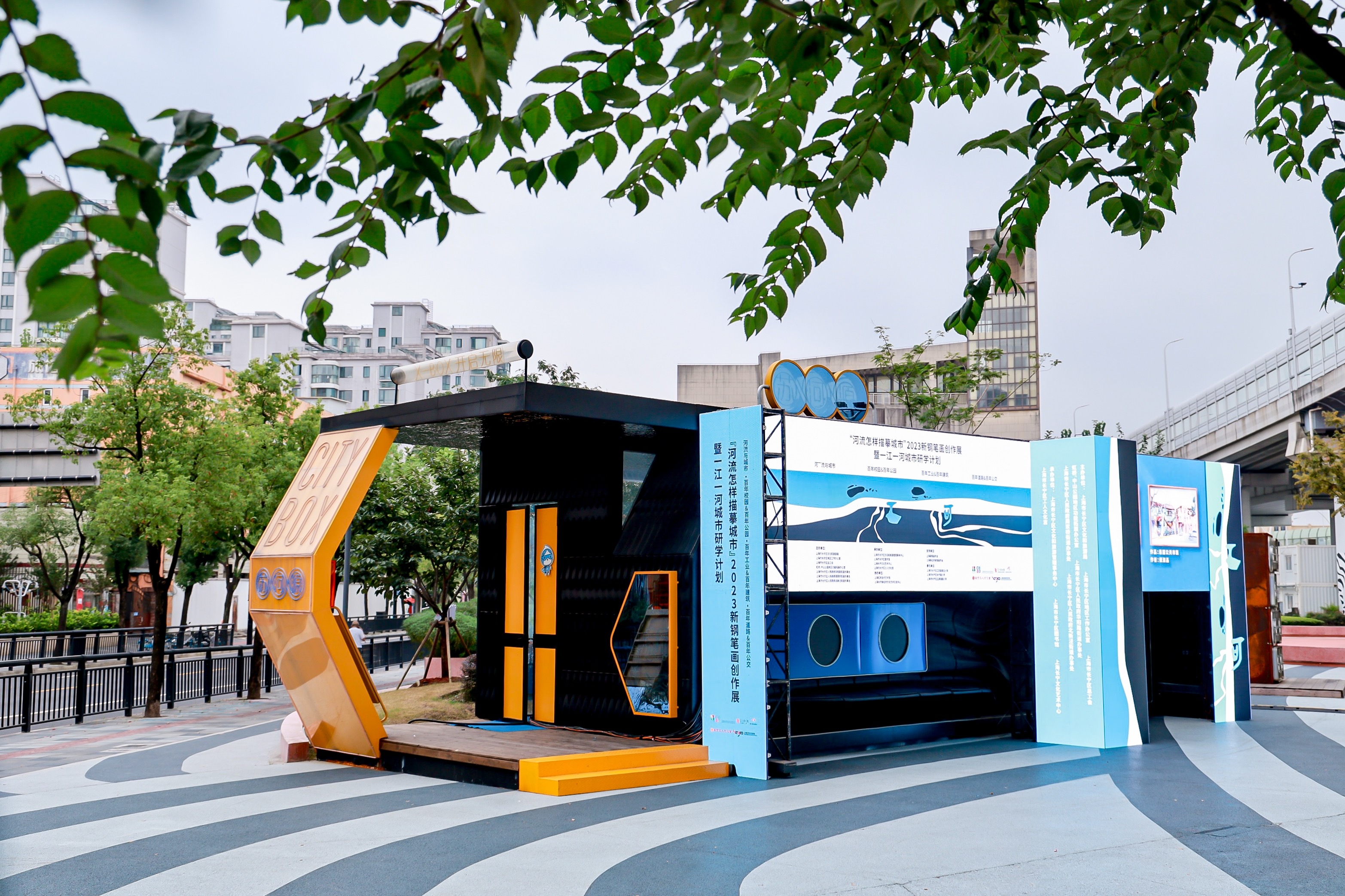 北新泾是现代苏州河工业的源头,也是上海现代城市文明的起源地之一。在洛克公园城市盒子CITYBOX,策展方将BOX用电子屏包裹,将多位艺术家共同创作的“彩绘苏州河”数字化全景长卷进行了动态展示。