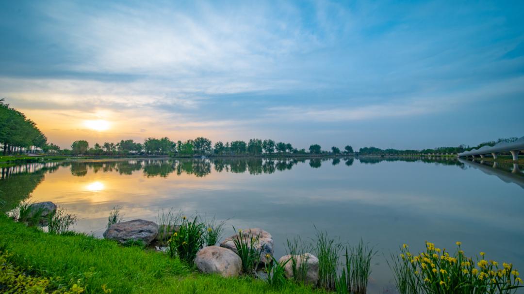 唐代诗人张若虚的诗词,我们最是熟悉。看到梁家滩和仪祉湖的美景,忽而想到那句“江天一色无纤尘”,诗人说的是江水、天空成一色,没有一点微小灰尘,在高新,又何尝不是如此?