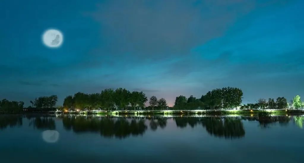 天色暗下来之后,湖边的灯光也亮了起来,但却比不过空中的月亮,它把皎洁洒在湖面,映射出曼妙的身姿,优雅高贵便是它的代名词。
