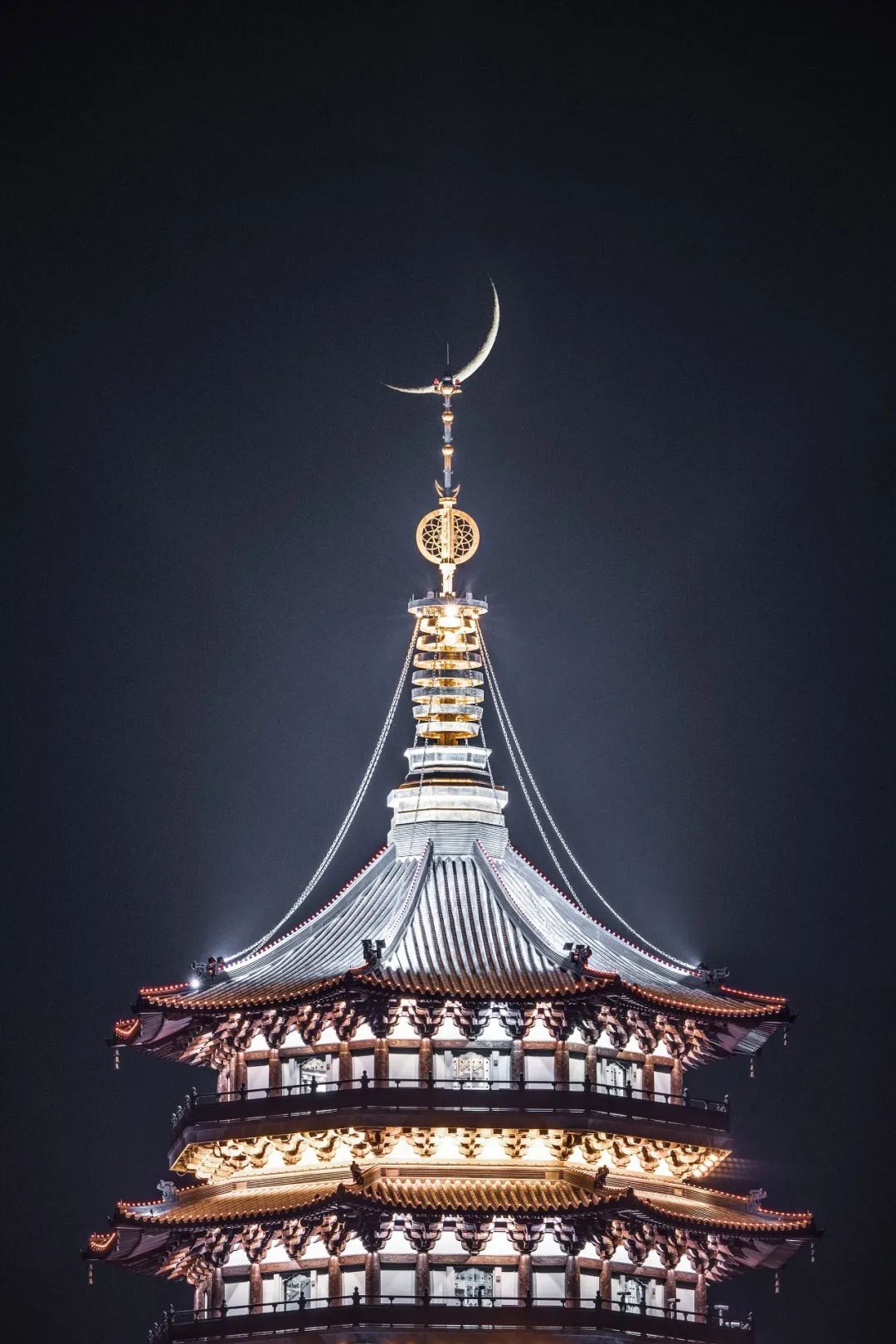 《雷峰蛾眉》首先是在浙江拍摄的《雷峰蛾眉》,这张照片拍摄于西子湖畔,月牙独特的造型和角度让画面中的佛塔在这一刻看上去有了一丝清真寺的韵味,非常有趣。