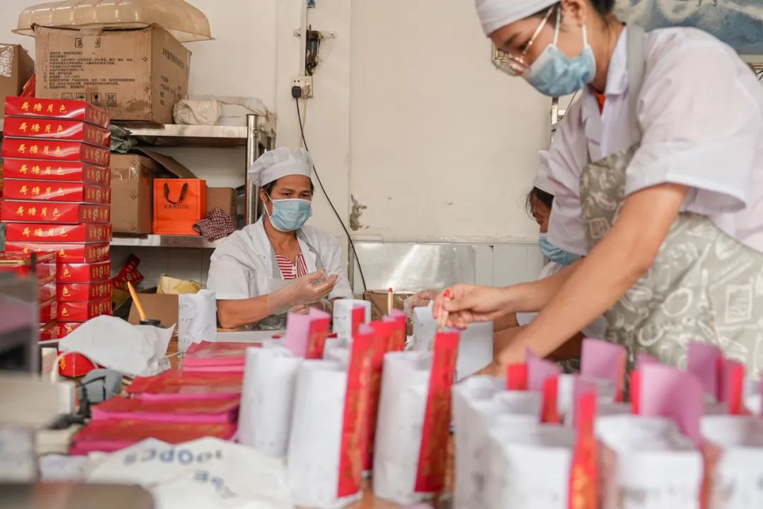 虽然机械化生产已经愈发成熟与常见,但老一辈们还是喜欢去买手工制作的月饼,那种不能复制的味道和温度,代表着东莞人对节日的真心珍重。