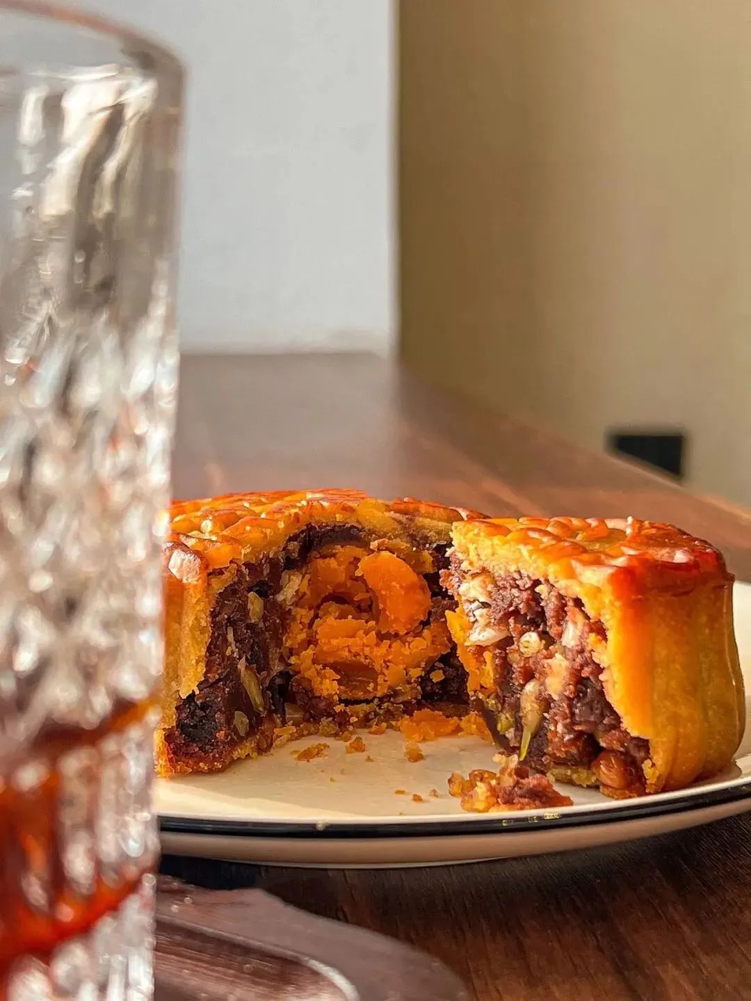 虽然没有金灿灿的蛋黄馅惊喜,但是却拥有着纯粹的快乐,因为其黑乎乎的内馅被笑称“牛屎月饼”。