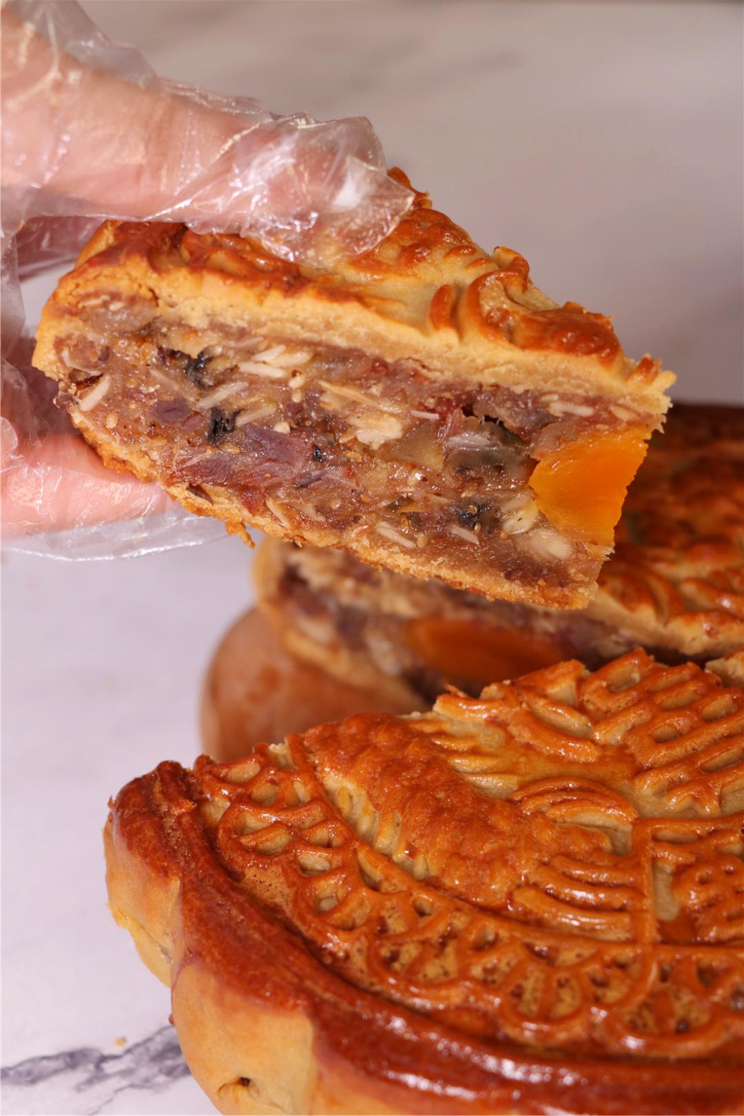 这家是石龙人民常去的老店,地地道道的老石龙风味。大月里面的馅料很豪华,十多种料子的搭配,蚝豉冬菇、上等榄仁、盐焗杏仁、瓜子仁、靓叉烧、咸蛋黄...一口下去全都是料,真的一个顶10盒。