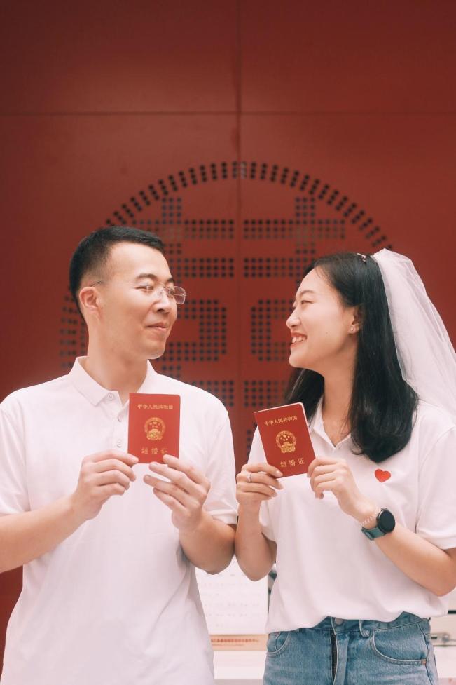 2023年毕业季,我们在民政局领了结婚证。毕业后,你在长沙本校升学攻读博士,我来到天津成为静海区检察院的一名选调生。在一起的700多天里,我们线上见面的时间大于线下见面的时间,但是衡量一段感情的不止有物理上的距离还有心与心之间的距离。