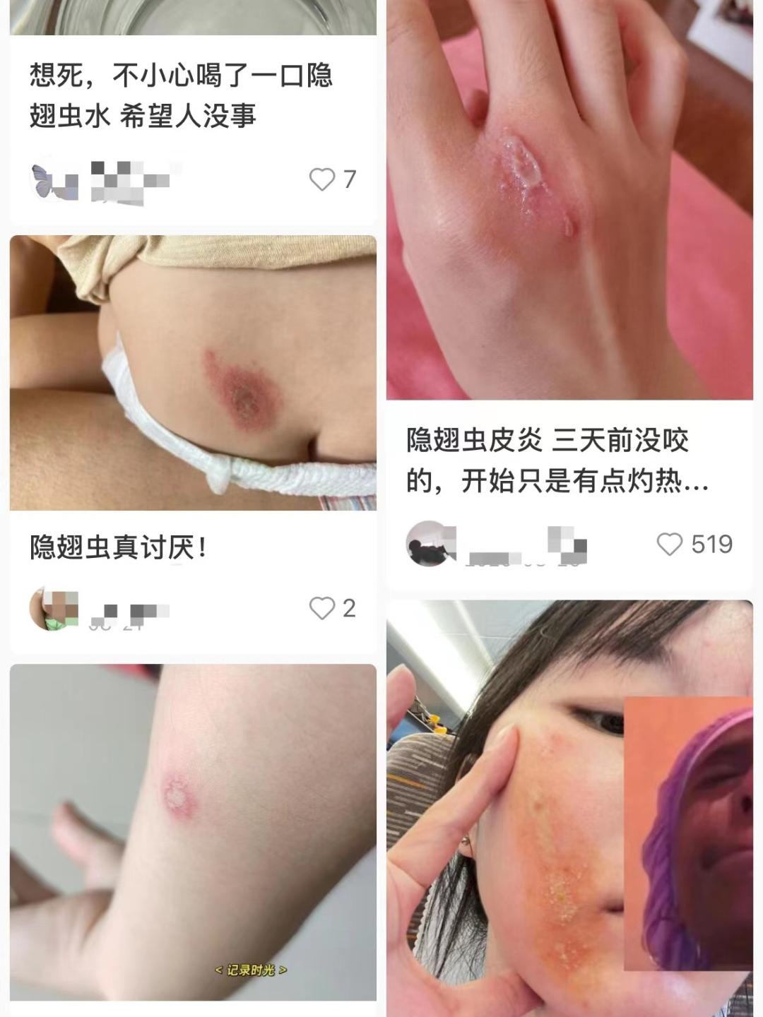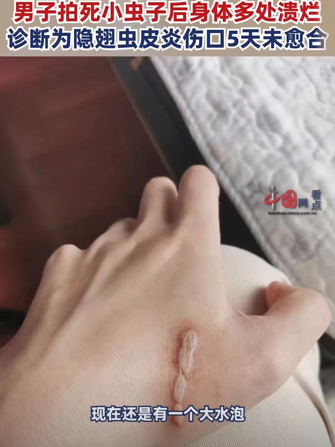 “我坐在床上玩手机,突然感觉脸上有东西在爬,伸手摸到一只虫子就使劲儿把它捏死了,过了一会儿,我隐约觉得脸上被虫爬过的地方有灼烧的感觉,还发红!”