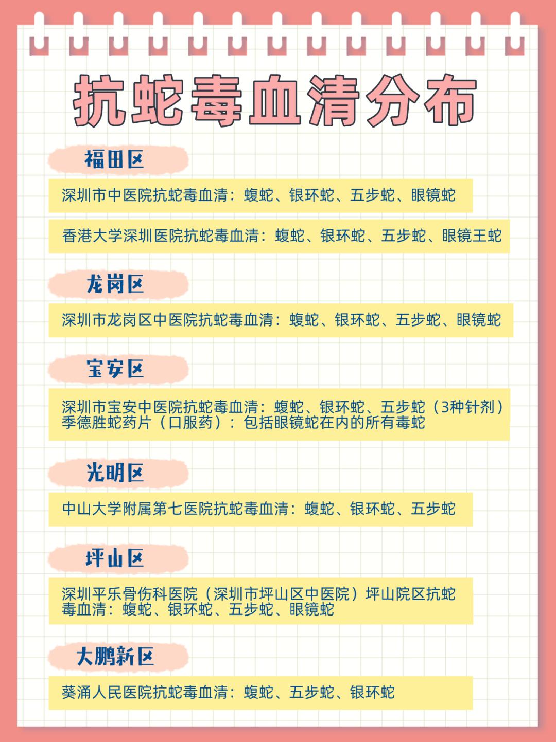 最后一步就是前往医院了,这里整理了深圳各医院的抗蛇毒血清情况,大家可以收藏备用。