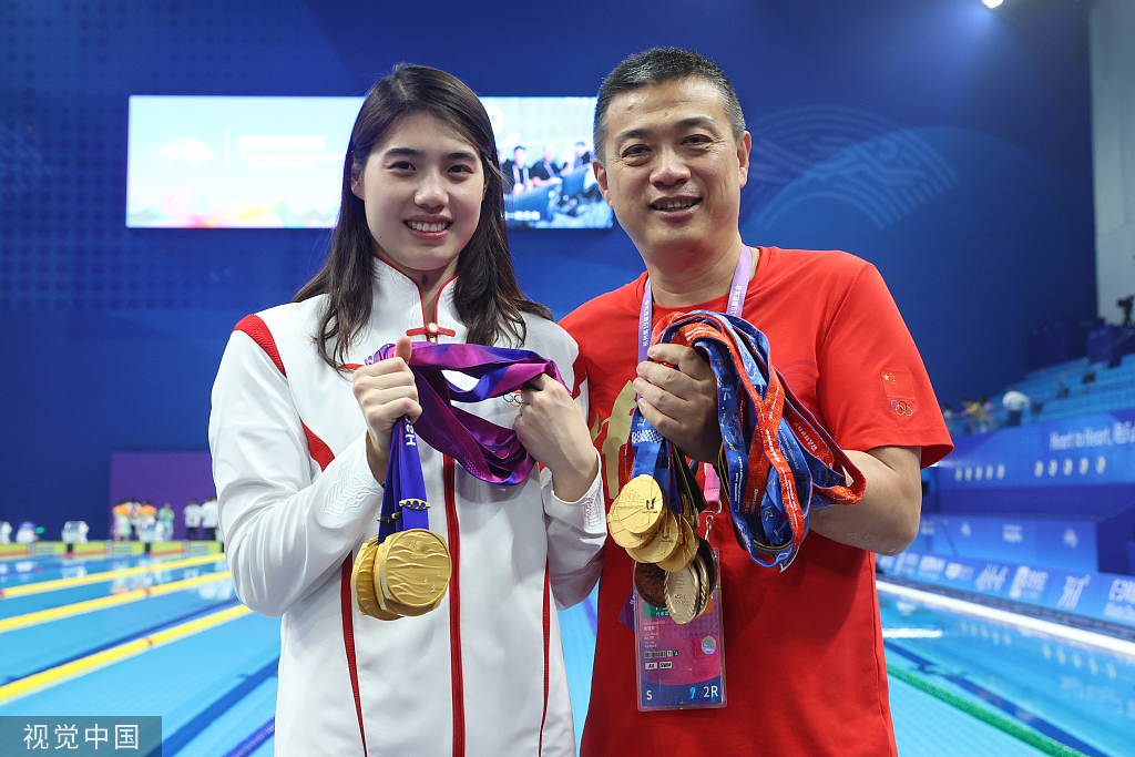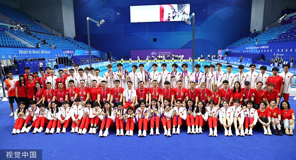 28金21银9铜,打破了2010年广州亚运会24金的纪录,创造了中国游泳队在单届亚运会上的历史最好成绩。全队创造6项亚洲纪录,其中3项来自个人项目——这是中国游泳队在杭州交出的答卷,被央视称为中国泳坛新的“黄金一代”。
