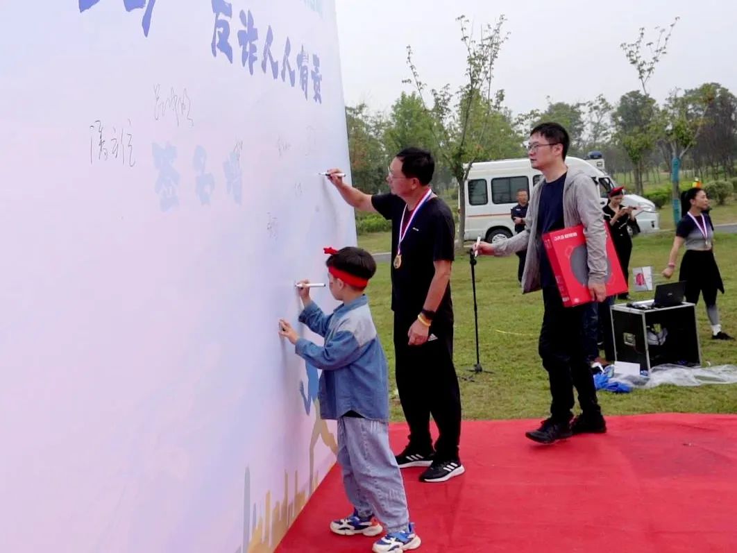 大家纷纷在反诈签名墙上签名