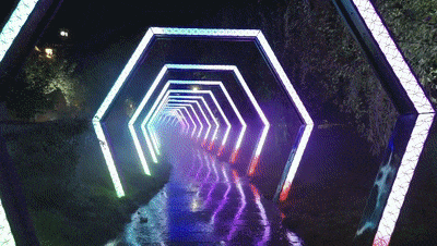 绚丽多彩的水幕灯光秀、梦幻的灯光通道、沉浸式时光隧道、星象天语互动设计等一处处充满诗意和浪漫的亮化景观节点,将现代科技与武当文化完美结合,展现出武当山独特的文化魅力。