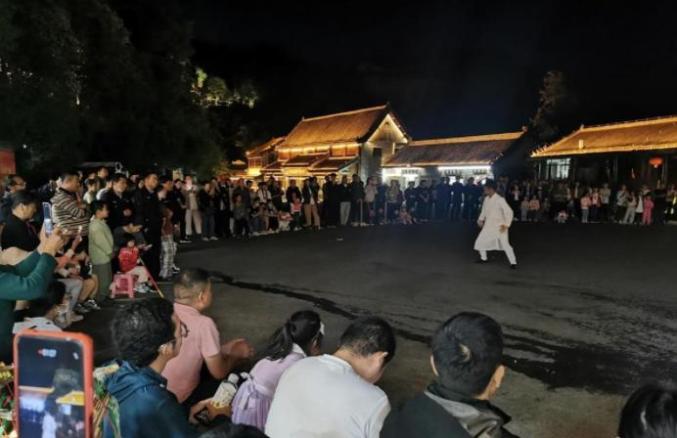来到这儿,可以沉浸式观赏和体验武当武术、茶道表演、香道表演、民歌演唱、颂钵音疗等各类特色文化活动。在休闲体验区可以品道茶、闻道香、尝烧烤、购文创。活动结束后,还将进行国庆主题电影展播。9月29日至10月6日,在玉虚街将有武当武术、武当民俗表演。